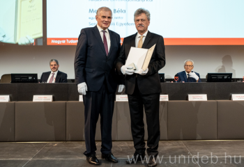 A Debreceni Egyetem több szakembere és hallgatója is elismerést vehetett át a 37. Országos Tudományos Diákköri Konferencia záróünnepségén a Magyar Tudományos Akadémia Dísztermében. A keddi rendezvényen Mátyus László, az Általános Orvostudományi Kar dékánja a tehetséggondozásban végzett példamutató tevékenységéért megkapta az OTDT egyik legrangosabb elismerését, a Honoris Causa Pro Scientia Aranyérmet. A professzor november 25-től tölti be az Országos Tudományos Diákköri Tanács (OTDT) elnöki posztját.